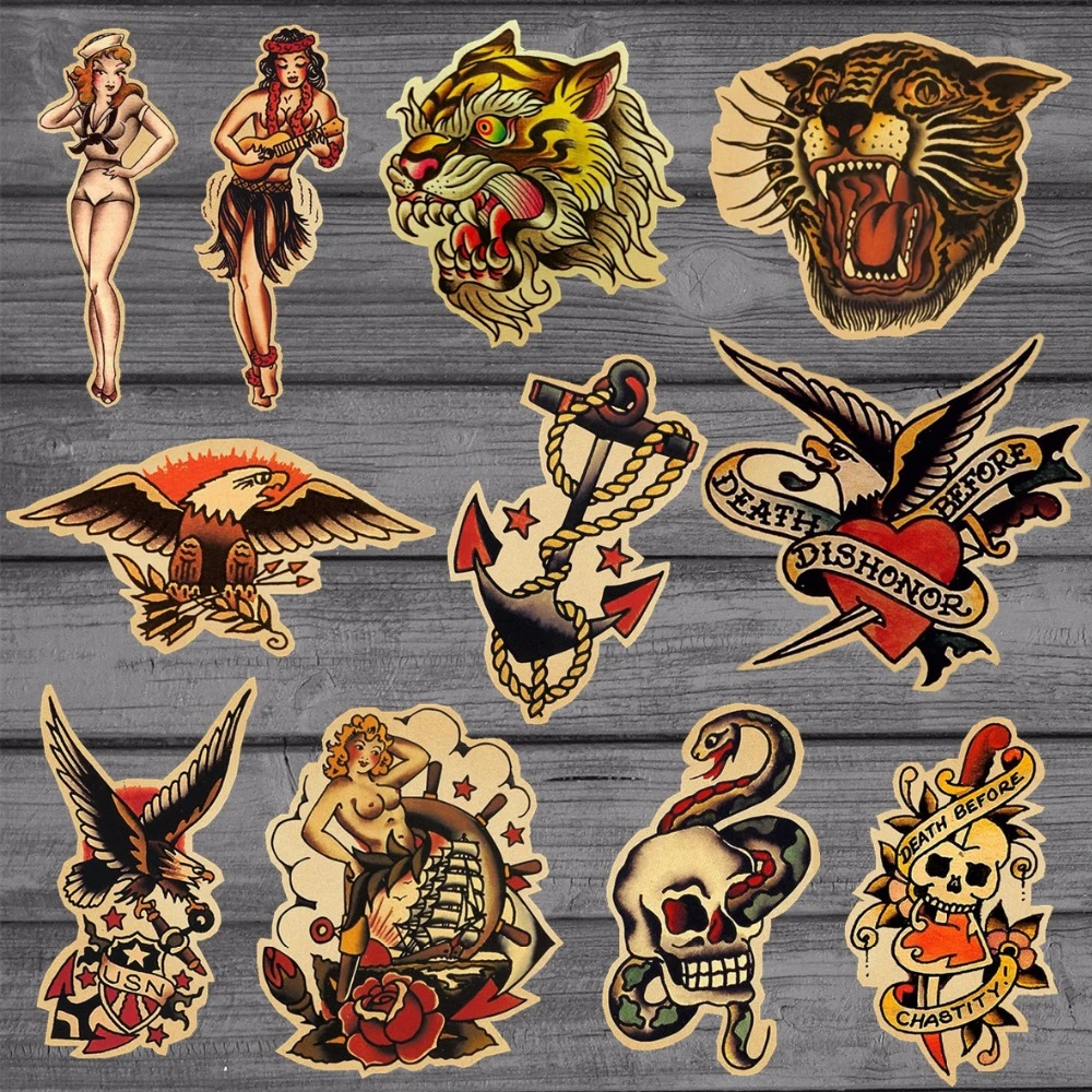 11pcs/Lot Sailor Jerry Sticker For Kids Toy Decal Suitcase Skateboard Wall Car Laptop Bicycle Motorcycle On Notebook Stickers